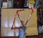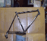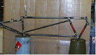 torch, so no welding is required (this is just as strong as welding, but can be taken apart more readily if the joint is not correctly positioned). Note how much longer the frame is (with the front forks in place, 183cm), and how much lower to the ground the seat will be (less than 1 m). For more information on recumbents, watch this page develop as the bike progresses, or visit some of the sites I have included.